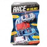 Set di quattro macchinine con funzione di rinculo per un divertente viaggio sull'autostrada. La lunghezza di ogni macchinina è di 7 cm. Un regalo perfetto per i piccoli appassionati di auto e giochi.