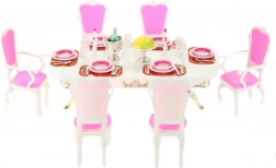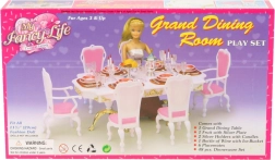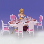 Il set elegante Glorie per la tavola delle bambole trasforma ogni cameretta in una raffinata sala da pranzo. Include un grande tavolo in plastica, 6 sedie (2 con braccioli) e un ricco apparecchiamento con bicchieri, piatti e posate. Ideale per il gioco creativo dei bambini dai 3 anni in su.