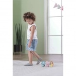 Il giocattolo è realizzato in legno laccato resistente e colorato con vernici atossiche, sicure per i bambini. I bordi levigati e le dimensioni maneggevoli sono ideali per le piccole mani. Nel gioco sia condiviso sia individuale, i bambini allenano creatività, motricità fine e fantasia.