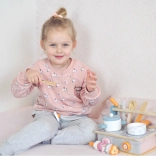 Questa elegante cucinetta in legno 2 in 1 combina la cucina classica con la grigliata. Grazie alla struttura pieghevole si adatta facilmente allo spazio e alle preferenze del piccolo chef. Due piastre con manopole girevoli conferiscono al gioco un tocco realistico e i bambini allenano motricità fine e fantasia.