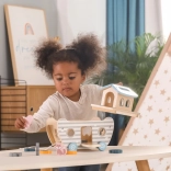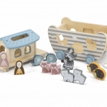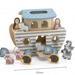 Grazie ai 14 pezzi – arca, casetta e set di animaletti – i bambini imparano a distinguere forme, colori e coppie, allenando allo stesso tempo la coordinazione occhio–mano e il pensiero logico. Il giocattolo è adatto dai 18 mesi e, grazie ai bordi arrotondati, è sicuro per i piccoli esploratori.