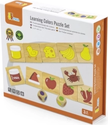 Gioco educativo in legno grazie al quale i bambini imparano a distinguere i colori e ad abbinarli correttamente alle immagini. Oltre a conoscere i colori, acquisiscono consapevolezza di oggetti, piante o animali associati a tali colori, rafforzando la loro conoscenza del mondo che li circonda.