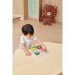 Il puzzle è a colori vivaci, il che garantisce che il bambino si diverta con il giocattolo e rimanga interessato.