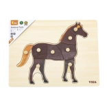 Il puzzle Montessori con il realistico soggetto del cavallo incoraggia i bambini a esplorare in autonomia e a concentrarsi. Grazie ai pratici pomelli afferrano facilmente i singoli pezzi, imparano a riconoscere le forme e allenano la precisione dei movimenti. Il contrasto tra il legno naturale e il cavallino marrone rende i contorni ben leggibili e invita al gioco.