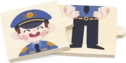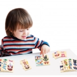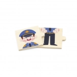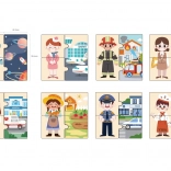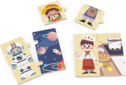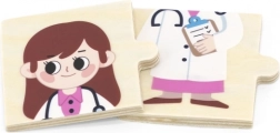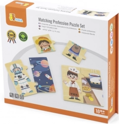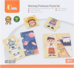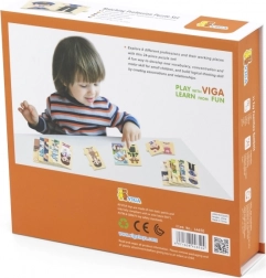 Il gioco didattico in legno VIGA introduce i bambini in modo divertente a diverse professioni – dal medico e pompiere al cuoco o astronauta. Ogni professione è composta da tre parti: due per il personaggio e una più grande per il luogo di lavoro. I bambini formano così la coppia corretta e la collegano all’ambiente.
