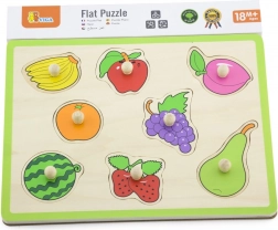 Questo puzzle in legno di qualità con frutta offre ai bambini un modo divertente di imparare. Ogni pezzo ha un pratico pomello in legno che facilita la presa alle manine. Durante il gioco i bambini esercitano coordinazione, pazienza e riconoscimento di forme e colori.