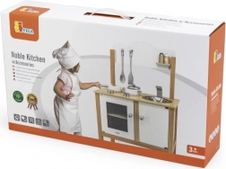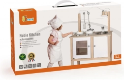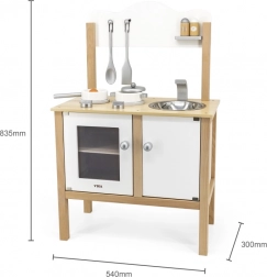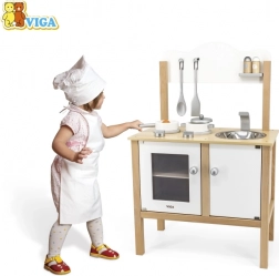 La cucina per bambini in legno del marchio Viga è ideale per i piccoli chef che vogliono imitare la cucina. Questa struttura in legno con superfici bianche e in legno naturale dal design moderno è resistente e allo stesso tempo stilosa, adattandosi a qualsiasi stanza dei bambini.