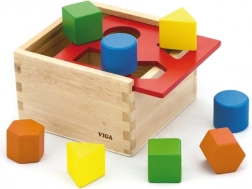 I bambini imparano in modo naturale a distinguere forme e colori inserendo i singoli pezzi nelle aperture corrispondenti. Favorisce la coordinazione e la concentrazione.