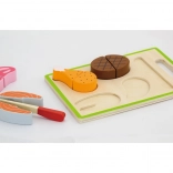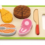 Ogni pezzo di carne è progettato per imitare realisticamente i veri alimenti. I bambini possono usare il coltello in legno per tagliare la carne e poi riunirla con il velcro. Il set è un ottimo aggiunto in qualsiasi cucina per bambini e stimola il gioco creativo.