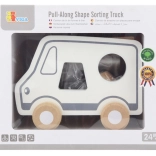 Questo gioco trainabile in legno a forma di camion combina due attività amate: trainare con la cordicella e inserire le forme. I bambini sviluppano il riconoscimento delle forme e la percezione spaziale, divertendosi con il movimento e il gioco di fantasia con un dolce camioncino.