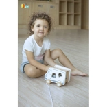 La cordicella robusta permette ai bambini di portare il camioncino ovunque. Durante il traino allenano la coordinazione dei movimenti e l’equilibrio.
