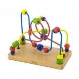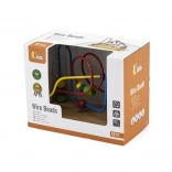 Le perline colorate su percorsi sinuosi motivano i bambini a spostare e ordinare, sviluppando così la presa, la coordinazione mano–occhio e la pazienza.