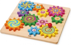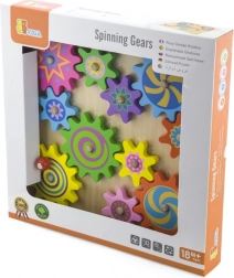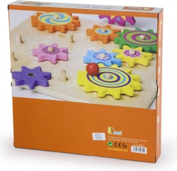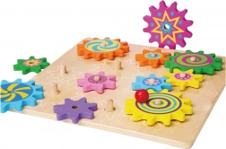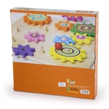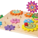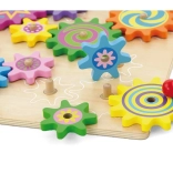 Pannello in legno di qualità e ingranaggi massicci con bordi lisci, progettati per il gioco quotidiano dei più piccoli.
