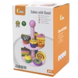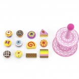 Questo elegante set di dessert in legno su alzatina a due piani è ideale per il gioco del caffè, il tè delle cinque o la pasticceria dei bambini. I pezzi in legno ben rifiniti e dai colori vivaci invitano alla scoperta e allenano la coordinazione occhio–mano.