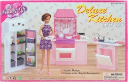 Offri ai bambini un gioco domestico realistico con il set cucina di lusso GLORIE, che include una completa cucina con forno, lavello con lavastoviglie e frigorifero con alimenti. Il set comprende anche ricchi accessori di stoviglie. La bambola non è inclusa. Adatto ai bambini da 3 anni.