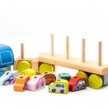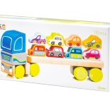Cubika presenta un unico camion di legno con automobili che entusiasmerà i bambini con i suoi colori e design. Il puzzle contiene 12 pezzi e permette di trasportare 8 automobiline in miniatura. La lunghezza del camion è di 32 cm e le singole automobiline misurano circa 5 cm. Il giocattolo aiuta a sviluppare: