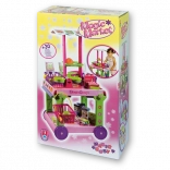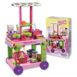 - Carrello mobile con tettoia rimovibile, bancone laterale estraibile, 4 cestini con manico, cassa con monete, bilancia con piattini, 12 pezzi di frutta e verdura, 8 scatoline di prodotti