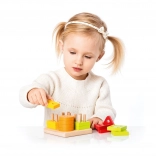 Inserire i pezzi sui pioli allena la presa, la precisione e la coordinazione occhio–mano. Ideale per le manine e per affrontare i primi compiti semplici.