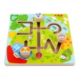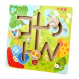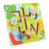 Lo spostamento degli animaletti lungo le scanalature allena la presa, la coordinazione occhio–mano e la precisione dei movimenti, ideale per i bimbi in età prescolare.