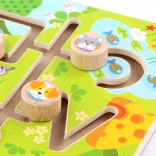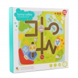 Il labirinto in legno Valle soleggiata offre ai bambini la gioia della scoperta e dell’apprendimento. La tavola illustrata con stagno e aree verdi coinvolge i piccoli nel gioco, dove cane, gatto e topolino avanzano verso i propri obiettivi. Grazie alle scanalature fluide le pedine scorrono facilmente e il gioco risulta sicuro e intuitivo.
