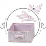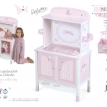 Elegante armadio guardaroba in legno per bambole con centro gioco della collezione NIZA, perfetto per ogni piccola amante della moda. Offre spazio guardaroba con asta e grucce, pratico cassetto e fasciatoio con mensoline. La lavorazione di qualità in MDF e legno massello, il delicato design in tonalità rosa e la facile maneggevolezza lo rendono un accessorio ideale per la cameretta dei bambini.