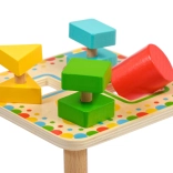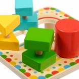 La tavola con piedini stabili presenta quattro fori con cornice colorata in tinta con i singoli pezzi. Il set è ideale per il gioco autonomo o per l’esplorazione condivisa con i genitori ed è perfetto come giocattolo educativo in legno di qualità per i bambini in età prescolare.