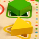 Quattro fori bordati a colori sulla tavola corrispondono ai colori dei pezzi. I bambini imparano facilmente i colori e le forme geometriche di base.