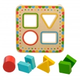 Questo originale inserto in legno offre molto più del semplice inserimento delle forme. I tre elementi in due parti devono essere prima abbinati correttamente e poi ruotati durante l’inserimento per passare agevolmente attraverso la tavola. I bambini allenano così in modo naturale la coordinazione occhio–mano, la percezione spaziale e il ragionamento tattico.