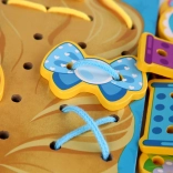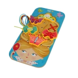 Il set di infilatura in legno Principessa offre un apprendimento giocoso e tanto divertimento creativo. Su una grande tavoletta con la principessa, i bambini possono creare le proprie acconciature e decorarle con corone, fiocchi e farfalline, fissandole con i lacci nei fori predisposti. L’attività favorisce pazienza, concentrazione e sviluppo della motricità fine.