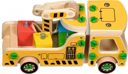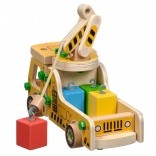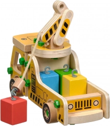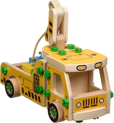 La confezione include 16 pezzi in legno per assemblare la gru, viti, un cacciavite e 4 blocchi colorati che rappresentano il carico. Questo giocattolo funziona anche come strumento Montessori, aiutando il bambino a sviluppare efficacemente competenze diverse.