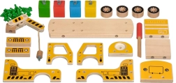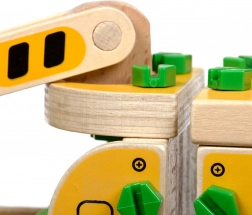 Il set di costruzione favorisce lo sviluppo della motricità fine grazie all'assemblaggio dei pezzi con viti e cacciavite.