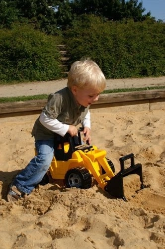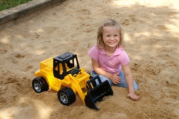 I bambini possono caricare, trasportare e scaricare i materiali proprio come una vera macchina: ideale per sabbiera e giardino.