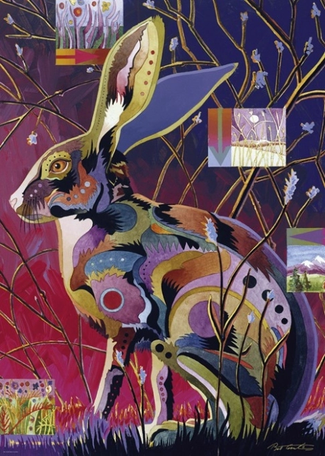 Questo puzzle di design propone una composizione decorativa e d'impatto dell'artista Bob Coonts, che vive nelle Montagne Rocciose ed è celebre per il suo stile colorato che esalta la bellezza degli animali. Il soggetto del coniglio conquisterà gli amanti della natura e i collezionisti di illustrazioni originali.
