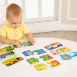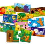 Far Far Land Puzzle è il giocattolo educativo ideale per bambini da tre anni in su. Questo set contiene 10 immagini puzzle, ciascuna composta da due pezzi: uno raffigura un animale e l'altro la sua abitazione. Grazie a questo gioco, i bambini imparano a riconoscere diversi tipi di animali e i loro ambienti, sviluppando la propria capacità di ordinare e combinare.