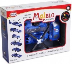 Scopri un mondo d'azione con la serie MalBlo MAGNETIC dedicata alla polizia. Grazie all'ingegnoso collegamento magnetico e a scatto, i bambini connettono facilmente i moduli e creano elicotteri, auto o veicoli speciali d'intervento – in pochi istanti. Il set include 9 pezzi (3 veicoli pronti), combinabili liberamente in decine di varianti originali.