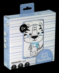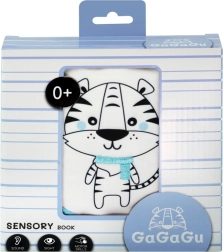 Il libretto sensoriale GAGAGU a doppia faccia con motivo della tigre per età 0+ sviluppa vista, tatto e udito del bebè. Offre alto contrasto con motivi in bianco e nero, elementi ricamati con diverse texture per le dita, alette fruscianti e il divertente gioco del “cucù”. Perfetto per le prime scoperte di forme, colori e animaletti.