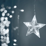 Questa tenda luminosa con stelle trasparenti di varie dimensioni illumina finestre, pareti e angoli foto. Il bianco freddo crea un aspetto pulito e festivo e una luce soffusa, ideale per decorazioni natalizie, camere dei bambini e serate romantiche.
