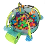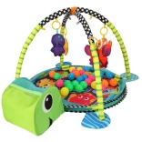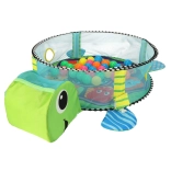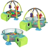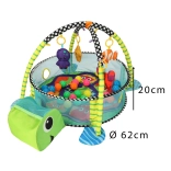 - Piscina con rete: Il tappeto è dotato di una rete che, una volta aperta, crea una piscinetta ideale per giocare con palline e giochini.