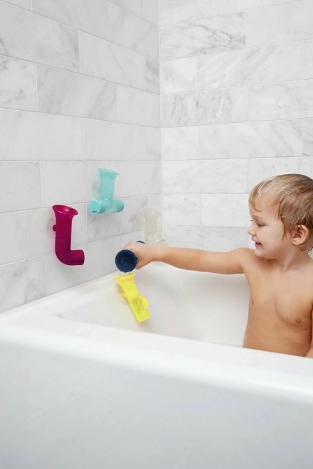 Giochi colorati a forma di L garantiscono tanto divertimento durante il bagnetto. I bambini possono giocare con l’acqua e osservare come scorre attraverso i diversi segmenti di tubazioni.