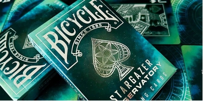 Le carte da gioco Bicycle Stargazer Observatory sono l’ultima aggiunta alla collezione Bicycle Stargazer a tema spaziale. Il design delle carte è ispirato alle costellazioni e alla geometria sacra. Un mazzo dall’impatto visivo molto forte con un tema astrale.