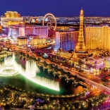 Scopri l’atmosfera unica di Las Vegas in un suggestivo panorama notturno con icone come la Torre Eiffel e la grande ruota sullo Strip. La stampa fluorescente conferisce al motivo, dopo l’esposizione alla luce, un effetto originale trasformando la tua opera in una decorazione luminosa.