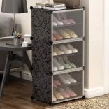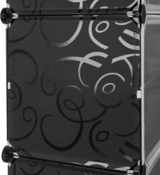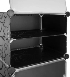 I pannelli in plastica resistenti con motivo decorativo e i connettori in metallo assicurano stabilità e lunga durata anche con uso quotidiano. Il montaggio è intuitivo, senza attrezzi speciali, e grazie alle dimensioni compatte la scarpiera fa risparmiare spazio in ingresso, cabina armadio e camera da letto.