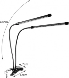 Questa pratica lampada di coltivazione a due teste con 40 LED combina lo spettro rosso (630 nm) e blu (470 nm), che supporta fotosintesi, radicazione, crescita e fioritura. Grazie ai collo d’oca flessibili indirizzi facilmente la luce esattamente dove le piante ne hanno bisogno, fissandola con la clip a una mensola o a un tavolo.