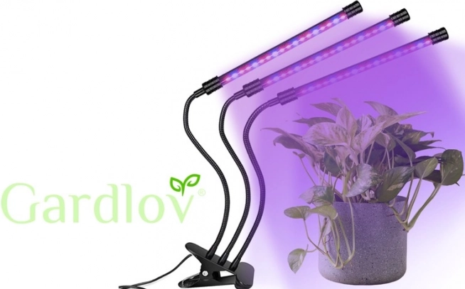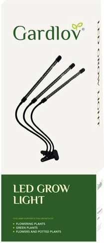 La lampada LED per coltivazione GARDLOV combina gli spettri rosso (630 nm) e blu (470 nm), che supportano la fotosintesi e favoriscono tutte le fasi di crescita – dalla germinazione e radicazione, alla fase vegetativa fino alla fioritura. Tre pannelli luminosi indipendenti su bracci flessibili assicurano una copertura uniforme e un facile orientamento della luce.
