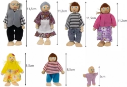 - Altezze bambole: Nonno: 11,5 cm, Nonna: 11,2 cm, Papà: 11,5 cm, Mamma: 11,2 cm, Figlia: 8,5 cm, Figlio: 8,5 cm, Neonato: 6 cm