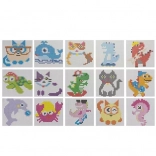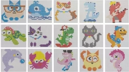 Due basi quadrate trasparenti collegabili e 15 motivi con animaletti aiutano i bambini a posizionare con precisione le perline e a realizzare anche immagini più grandi.