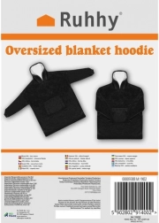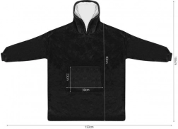 Goditi il massimo comfort e calore con questa felpa–coperta oversize di colore nero. La morbida fodera in pelliccetta sherpa, la pratica tasca grande e il comodo cappuccio ti tengono al caldo a casa davanti a un film, sul balcone e anche in campeggio. Taglio unisex per adulti e bambini e manutenzione lavabile per un'igiene facile.