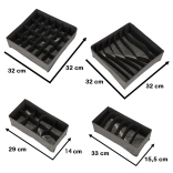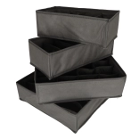 Mettete ordine nei cassetti in un attimo. Questo set di 4 organizer in tessuto con diversi numeri di scomparti suddivide con chiarezza calzini, biancheria intima, reggiseni e accessori. Grazie al materiale morbido ma rinforzato mantengono la forma, sono facili da pulire e, se necessario, si ripiegano in piano per essere riposti con facilità.