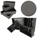 Il set di organizer grigi per cassetti offre un modo rapido ed elegante per mettere ordine nell’armadio. Ogni scatola ha una diversa disposizione degli scomparti, così potete separare facilmente calzini, slip, reggiseni, cravatte o cinture e avere tutto a vista appena aprite il cassetto.