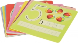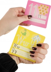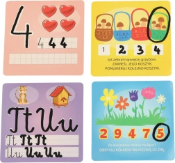Le carte colorate guidano i bambini passo dopo passo a riconoscere e scrivere i numeri 1–12 e le lettere maiuscole e minuscole.